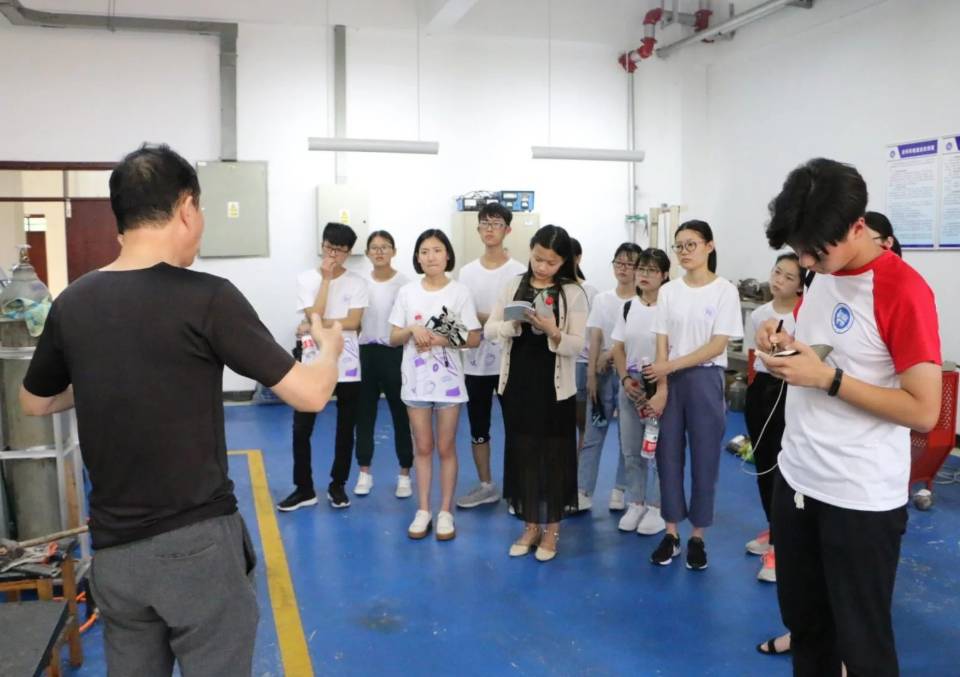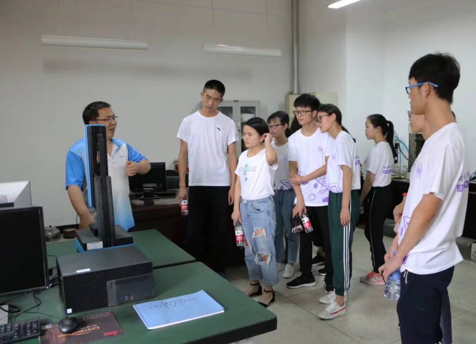中午短暂修整后,同学们又跟随夏令营营长与实践队员参观了工科一号楼中的各个实验室。实验室中的所谓“大机器”在工厂中只是小玩具,而“小机器”上却可以“蹲着”数位博士硕士。还未参观几个房间,同学们就已经汗流浃背,各位老师们却在这种条件下工作数年甚至是数十年。这样的精神如何不令人敬佩?