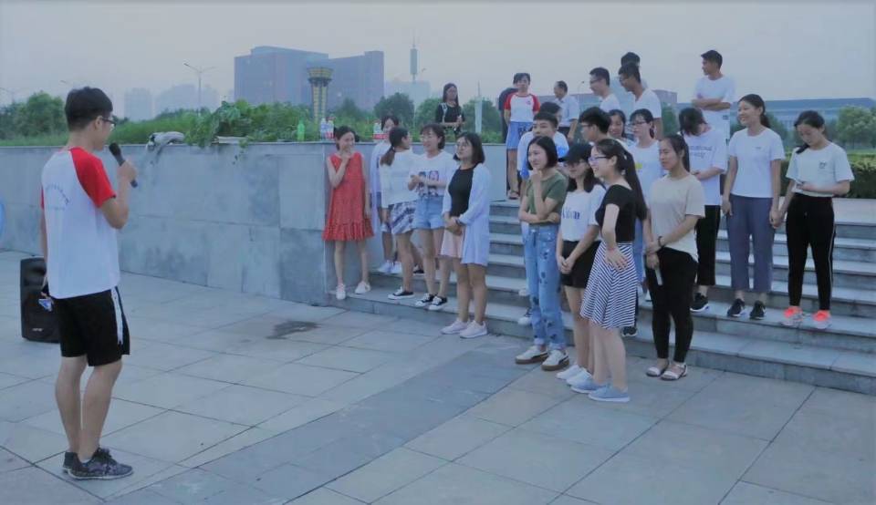 近一天紧张忙碌的时光悄然过去,在实践团成员的协助下,营员们纷纷完成了住宿手续的办理。合影留念以及到学校餐厅就餐后,夏令营的成员们汇聚到国旗广场,参加夏令营第一项重要活动---破冰之旅。