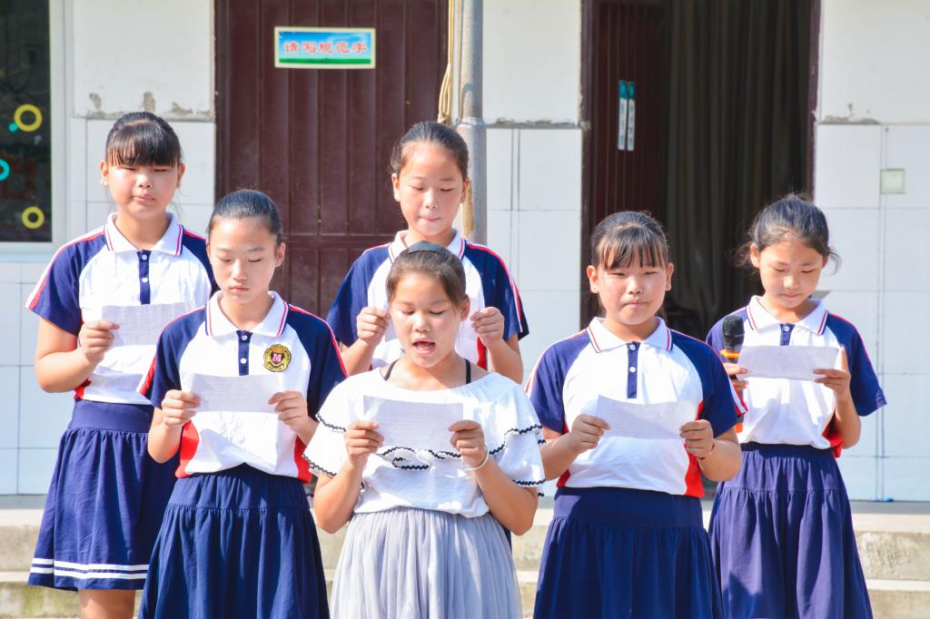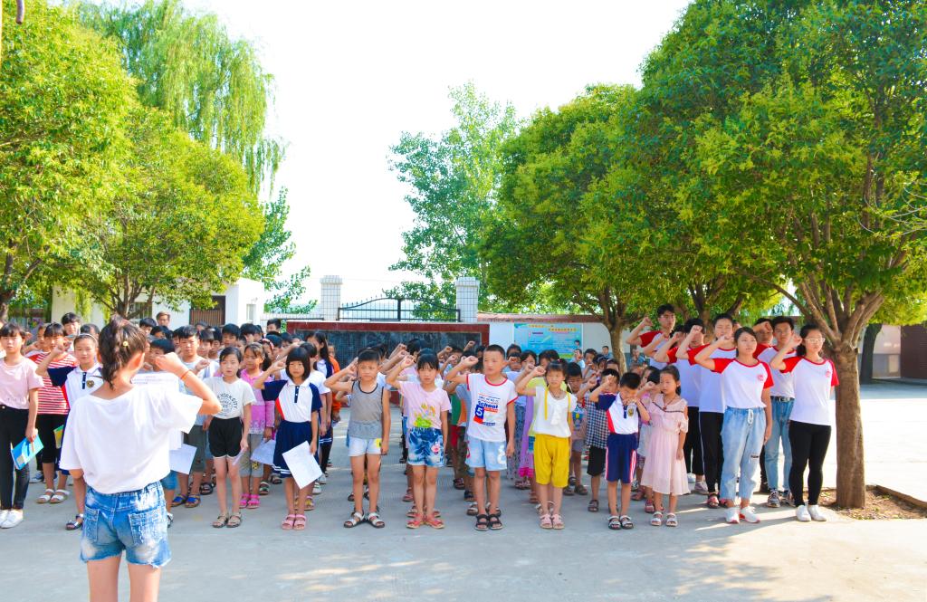 放飞青春梦想,奏响人生华章。7月24日早上八点,小天“材”支教团们在丰李镇前窑村小学举办了第一场诗歌朗诵比赛。红旗下的同学们严肃而庄重,没有一个人在这个时候调皮,都在静静地伫立,看着国旗升起。孩子并不够高大,却让每一位老师都感受到了另一种力量,一种来自孩童的力量。朗诵比赛每个年级的同学都有参加。朗诵的题目并不多,孩子们能看到的了解的只有书本上的一些短短的诗歌,虽有很多重复的题目登台,却丝毫掩盖不了孩子们的新奇与兴奋。